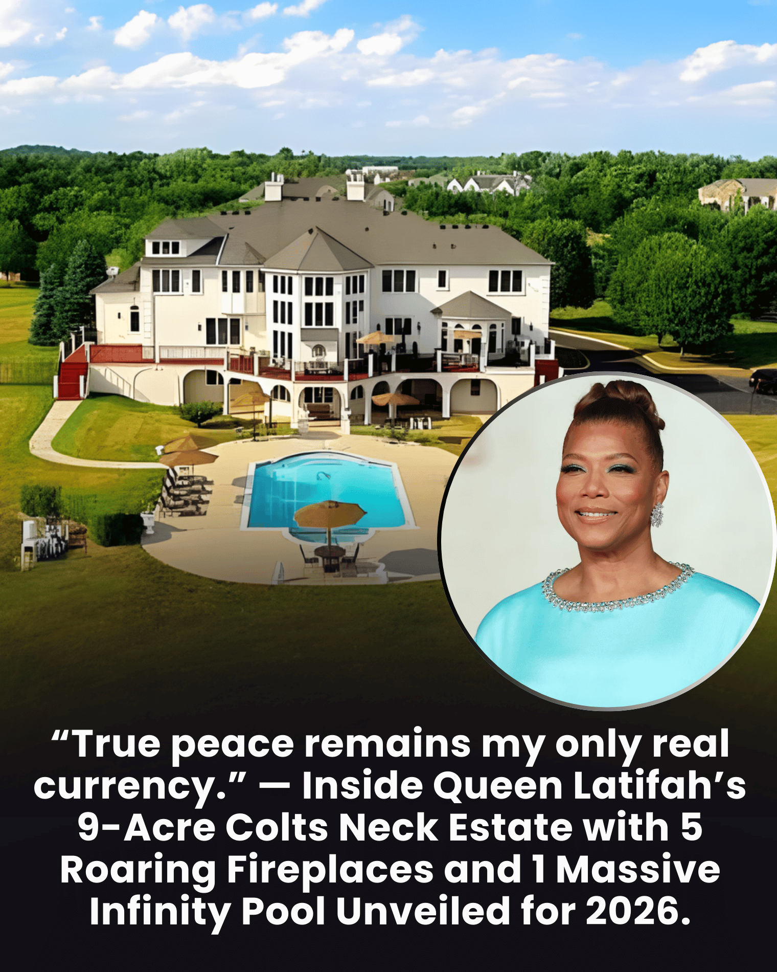 For Queen Latifah, luxury has never seemed most meaningful when it is loud. The more revealing detail is that her vision of comfort has long pointed back to New Jersey, to land, privacy, and enough room to breathe. Years ago, her Colts Neck property offered exactly that kind of refuge: a nine-plus-acre estate with more than 7,000 square feet of living space, six bedrooms, multiple entertaining spaces, a five-car garage, and an Olympic-size infinity pool set against landscaped grounds in one of Monmouth County's most secluded enclaves. Realtor.com's 2014 report on the home also described it as a place built for both "everyday living" and large family gatherings, which says a great deal about the way Latifah has always balanced celebrity with rootedness.