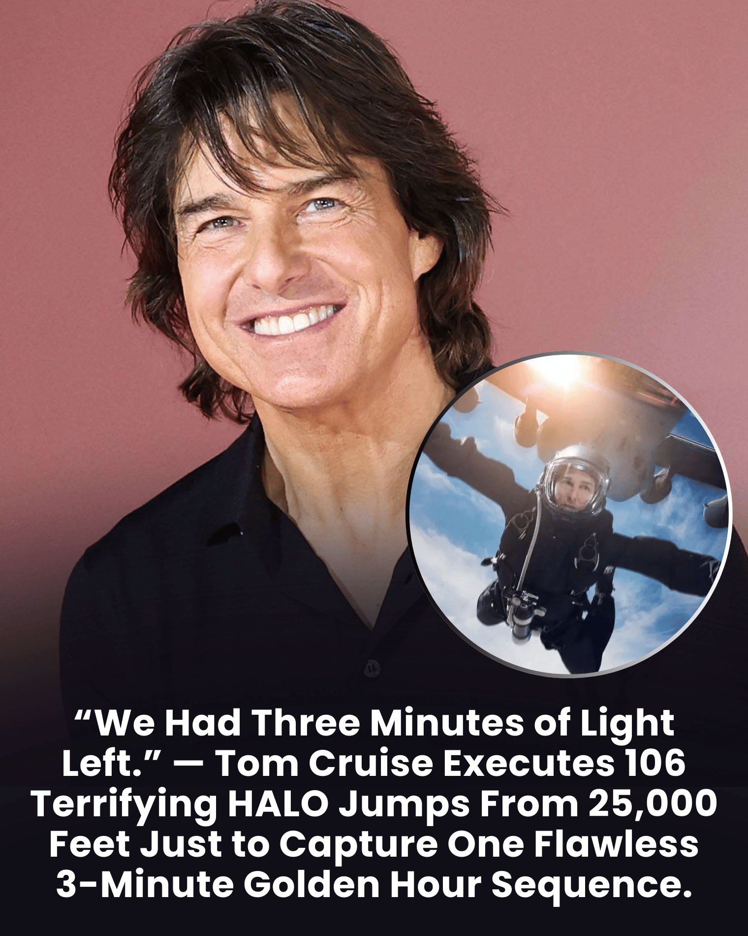 This meant the entire production team had only about three minutes of perfect lighting during each attempt. If the jump was slightly mistimed or the camera alignment wasn't perfect, the shot had to wait until the following day. Because of those limitations, Cruise ultimately performed the HALO jump 106 times during the filming process.